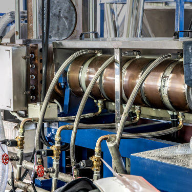 被覆はペレット製造機を用いて粒状の再生樹脂ペレットへと加工を行っています。