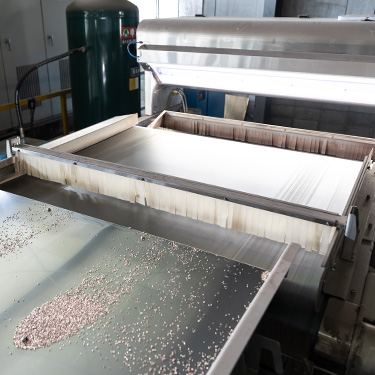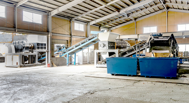 多数のナゲット機により被覆電線を高い効率でリサイクル処理を行う和歌山支店。被覆電線を破砕し、乾式ナゲット機と湿式ナゲット機に高純度の銅を取り出しリサイクル原料へと転換しています。